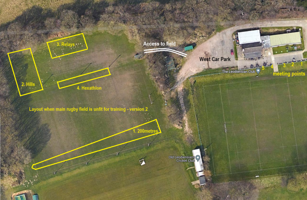 If all the rugby pitches are unsuitable for training, we will have 3 timeslots on the cycle track at Alwoodley Green with a maximum of 18 runners per timeslot