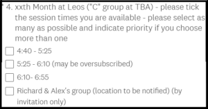 Booking for 2/9/16/23/30 December now open Please book by Thursday 27 November 10pm (especially if you want to come on … Continue reading Booking Junior Training Sessions