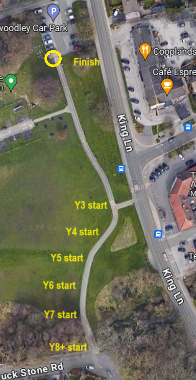 (parents in cars drive to Alwoodley Green car park) (carrying first aid equipment)(also available to drive injured children back to Leos)
