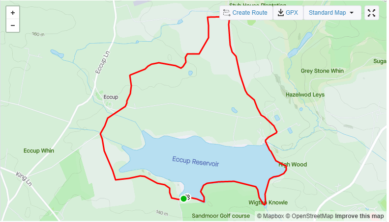 Since lockdown restrictions are beginning to ease a little, we are now able to launch our virtual Spring handicap race. The handicap is part of the Valley Striders Grand Prix series and you can complete it any time between now and 30th June. This time it will be the trail route, a circuit of approximately 5 miles around Eccup reservoir and the fields going out towards the Harewood estate. This route can be run in road shoes in dry conditions but off road shoes are recommended if it is wet underfoot.