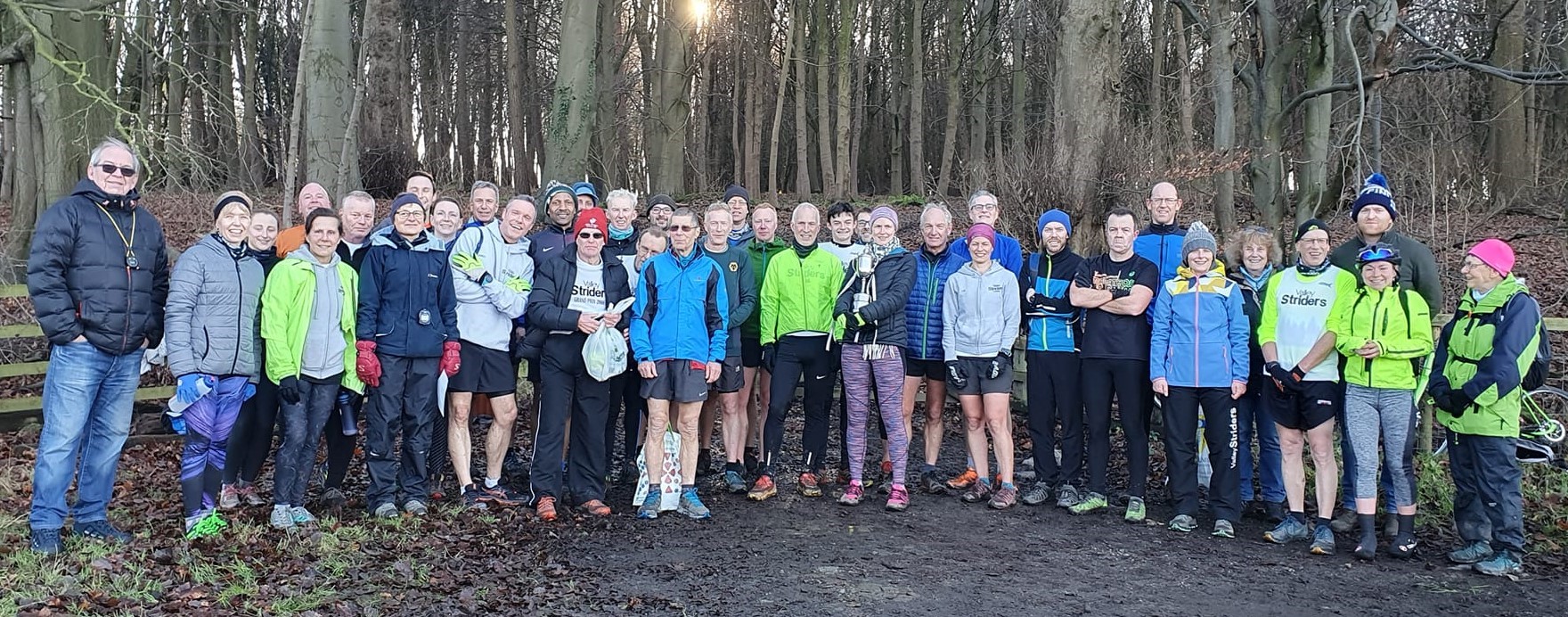 We had a beautiful but decidedly chilly morning for the first handicap race of the year. 33 striders tackled the scenic path around Harewood House, dodging walkers, cyclists and horses on their way. First to arrive back, and the trophy winner, was Elaine Craiggs. Congratulations to her and also to Dave Middlemas, who had the fastest run, completing the course in 30:40.