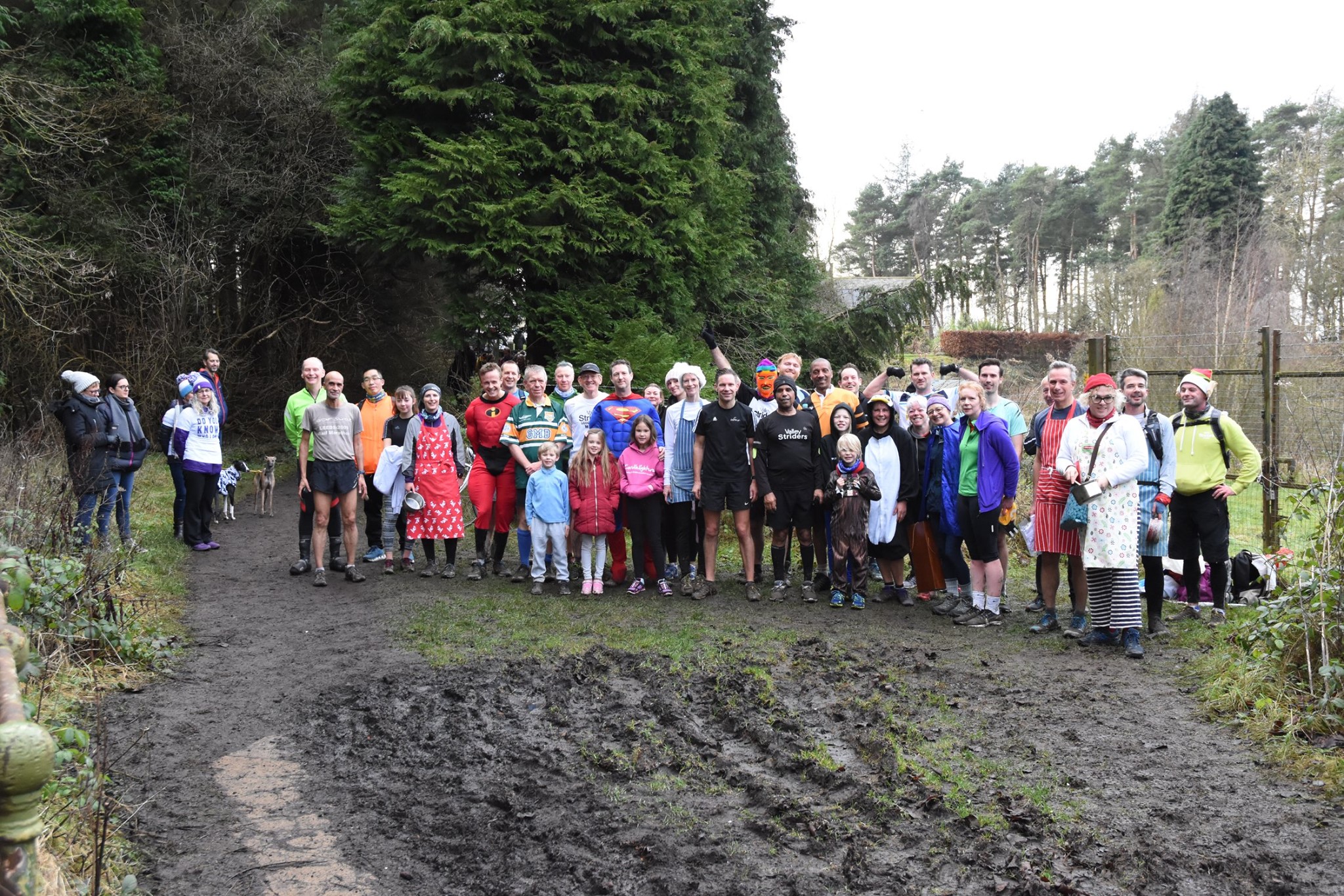 On Sunday 29th December, a select group of Striders gathered at Eccup Reservoir for the annual Winter Handicap. Dressed as rugby players, chefs, superheroes and a penguin, they battled the muddy paths around Eccup – a startling sight for any passing walkers and their dogs. Congratulations to Mike Powell who won the handicap trophy. Many thanks to Melanie Midgley, Ellen, Richard and Lucy Adcock, who came to witness our tribute to Terry and Matthew. Thanks also to Rick Sunderland, Kathy Robbins, Paul Sanderson, Andy Wicks, Philip Lim, Ian Sanderson, Steph Gledhill, Vernon Long and Joel and Kathryn Giddings for marshalling, timekeeping and taking photographs. The Spring Handicap will be in May when the evenings are a little lighter.